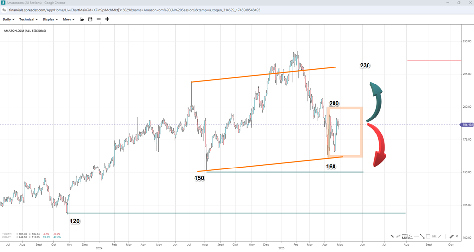 Apple and Amazon will report this week, although investors will also be interested in how effectively they are managing tariffs and the impact on operations and financial performance. Their ability to mitigate rising costs and keep consumer demand intact may be crucial factors in determining how their stocks perform going forward as trade tensions continue.