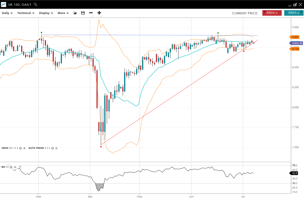 | UK 100 | Neutral | Range | 8,805 | 8,800 | 8,734 | 8,881 | 53 |