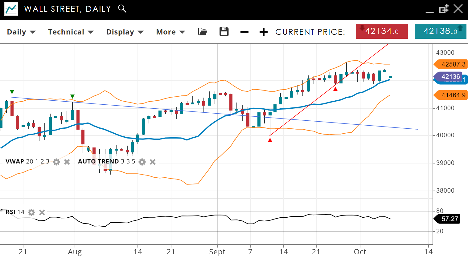 | Wall Street | Bullish | Impulsive | 42136 | 4120 | 41464 | 42587 | 57 |