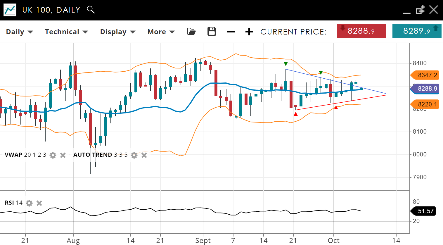 | UK 100 | Neutral | Consolidation | 8288 | 8286 | 8220 | 8347 | 51 |