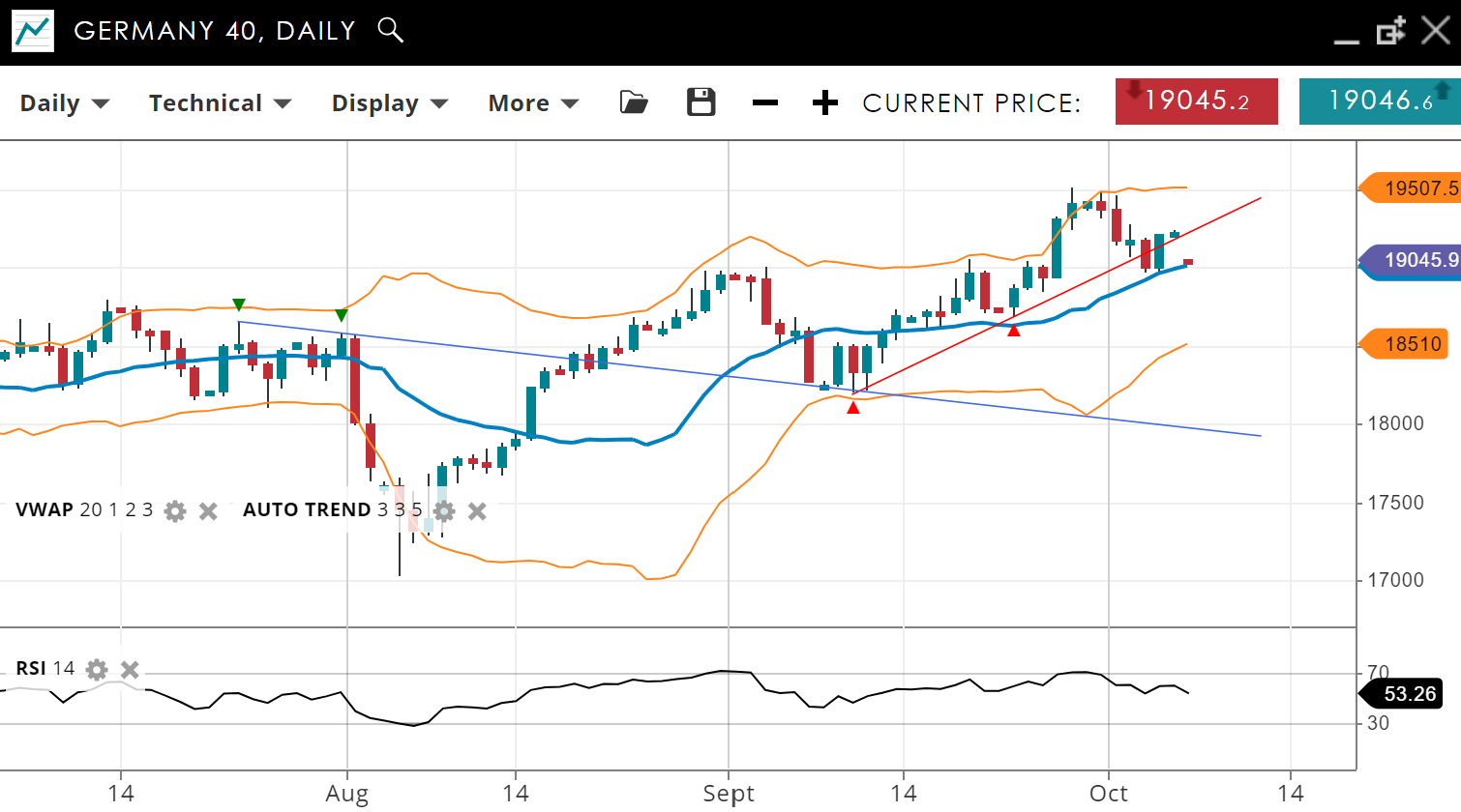 | Germany 40 | Bullish | Corrective | 19045 | 19000 | 18510 | 19507 | 53 |