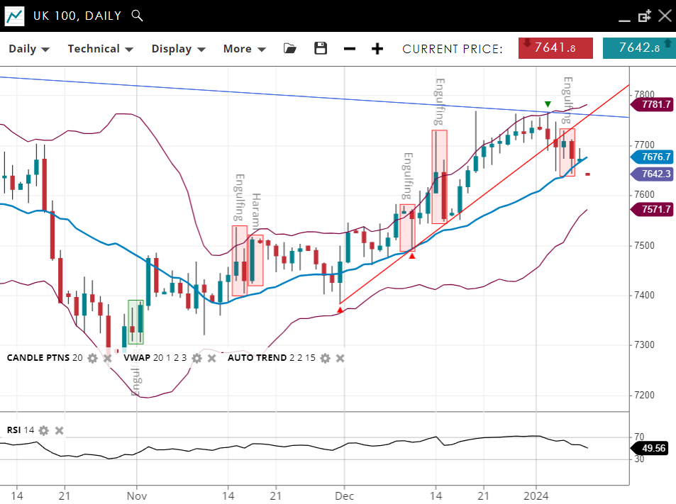 | UK 100 | Bullish | 7676 | 7571 | 7781 | 49 |