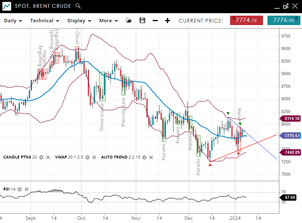 | Brent Crude | Bearish | 77.76 | 74.40 | 81.14 | 47 |