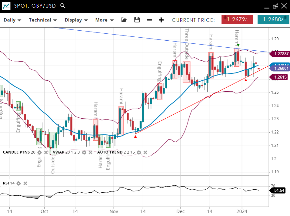 Demonstrating a bullish trend above its 20-period VWAP of 1.2673. The pair has support at 1.2521 and faces resistance at 1.2825. The RSI stands at 59, suggesting that there is still some upward momentum before the market becomes overbought.