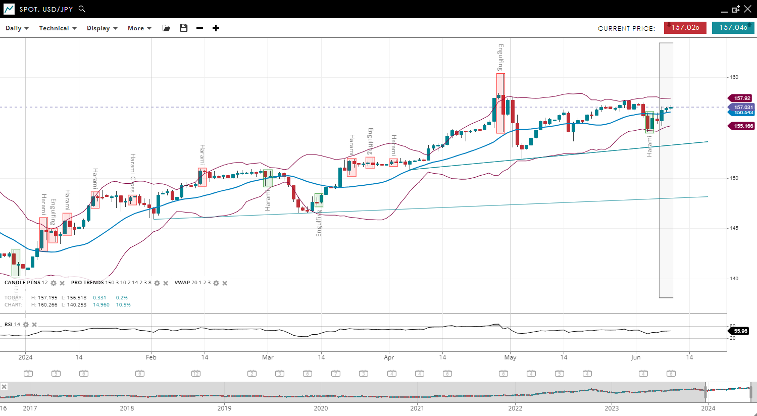 | USD/JPY | Bullish | Impulsive | 157.03 | 156.54 | 155.16 | 157.92 | 55 |
