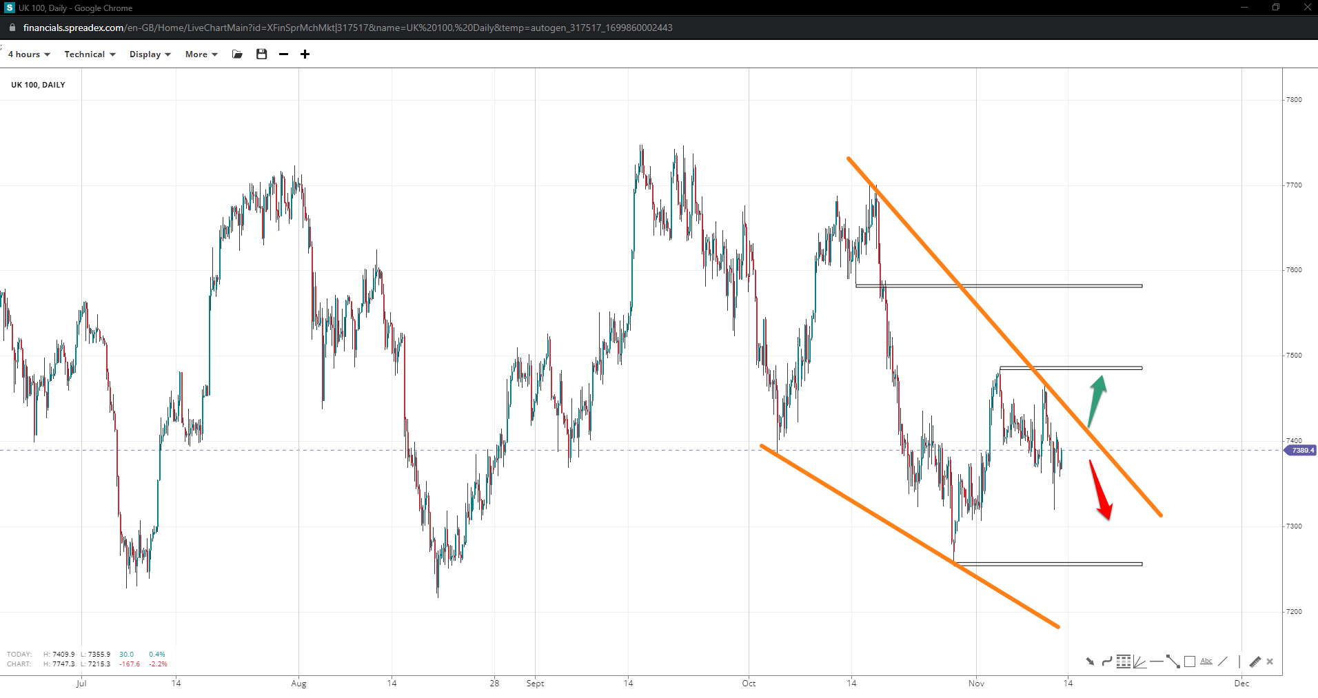 Spreadex Ltd is authorised and regulated by the Financial Conduct Authority, provides an execution only service and does not provide advice in any way. Nothing within this update should be deemed to constitute the provision of investment advice, recommendations, any other professional advice in any way, or a record of our trading prices. This update does not constitute or form part of an offer of, or solicitation for a transaction in any financial instrument, nor shall it or the fact of its distribution form the basis of, or be relied on in connection with, any contract therefore. Any persons placing trades based on their interpretation of the comments or information within this update does so entirely at their own risk.