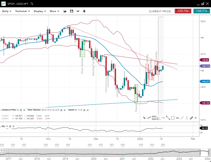 | USD/JPY | Bullish | 143.37 | 140.10 | 146.65 | 58 |