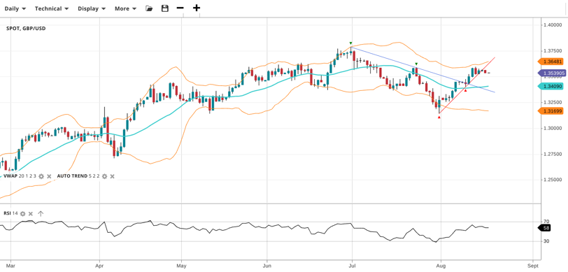 NOTE: These charts use the ‘Pro Trading Tools’ available on the SpreadEx trading platform. To use them, log in to your and click ‘Technical’ from the menu on any chart.