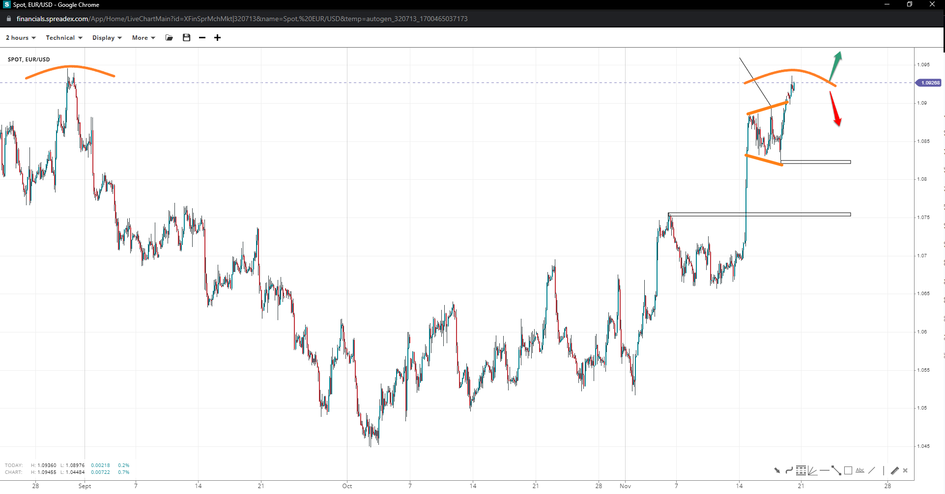 EUR/USD (2 hours)