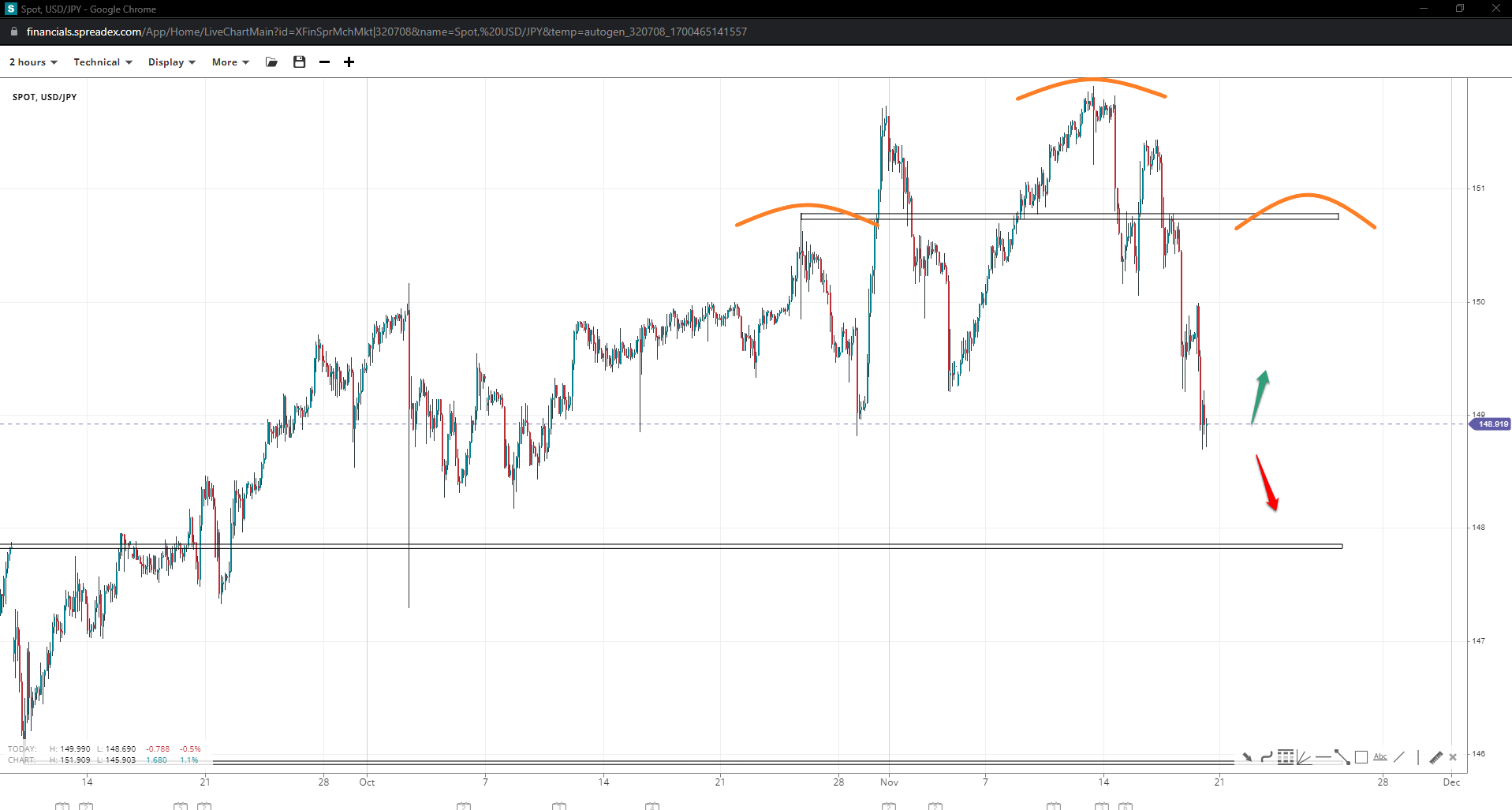 USD/JPY (2 hours)