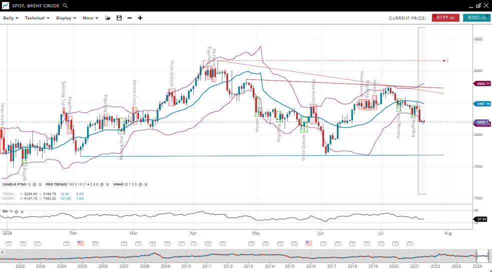 | Brent Crude | Bullish | Corrective | 82.00 | 84.87 | 81.98 | 88.05 | 37 |