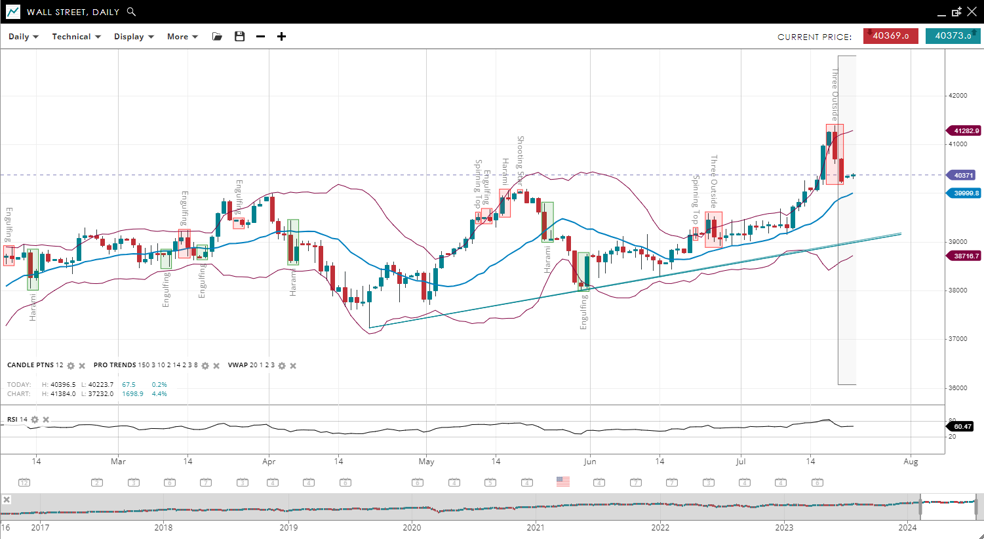 | Wall Street | Bullish | Corrective | 40371 | 39999 | 38716 | 41282 | 60 |