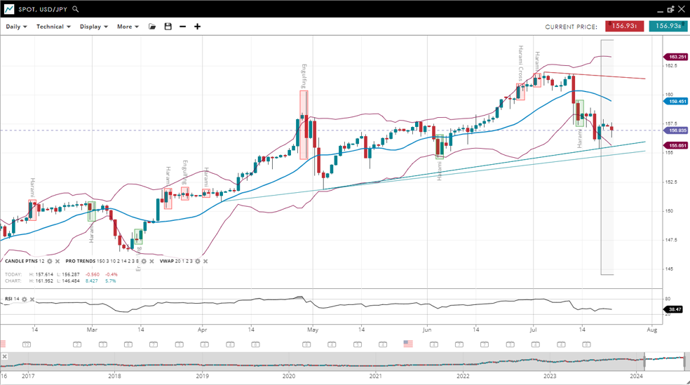 | USD/JPY | Bullish | Corrective | 156.93 | 159.45 | 155.65 | 163.25 | 38 |
