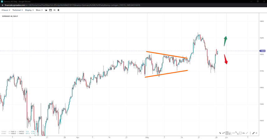 Wall Street could not break past 33300, but bulls managed to hold above the 33k handle in what appears to be a potential breakout towards 33750. If 33k is breached, a move toward the lower end of the range at 32500 will be more likely, but we might witness the formation of a falling wedge in doing so.