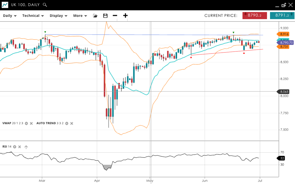 | UK 100 | Neutral | Range | 8,791 | 8,833 | 8,731 | 8,916 | 52 |