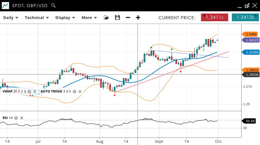 NOTE: These charts use the ‘Pro Trading Tools’ available on the SpreadEx trading platform. To use them, log in to your and click ‘Technical’ from the menu on any chart.