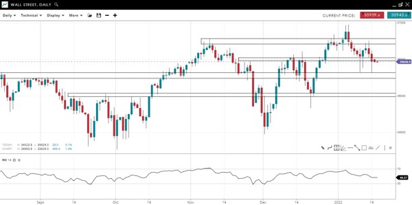 The index is consolidating after a test of the record high formed in November. For now, the uptrend is intact as the price makes higher lows and the RSI is above 50.